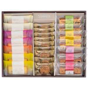 【フルーツフィナンシェ】 プレーン、オレンジ、バナナ、ラムレーズン×各1個 【フルーツケーキ】 フルーツミックス、オレンジ、ショコラマロン、チェリー×各1個 【フルーティークッキー(ラムレーズン)】×5個 |